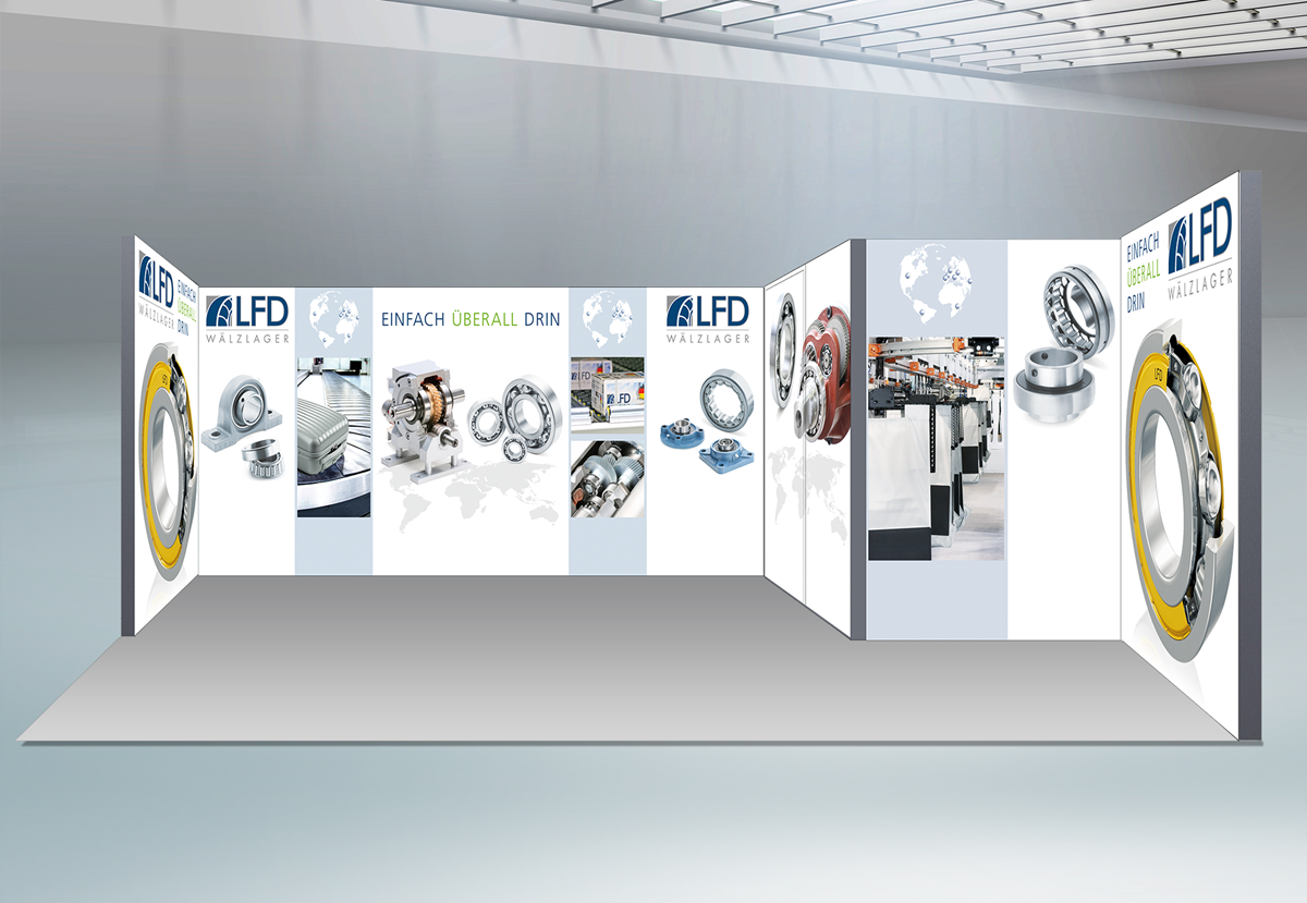 Weitenwirkung und Ausstrahlung im Nahbereich ist auf Messen entscheidend. Sie müssen auf einer Spezialmesse im Grunde nicht, wie bei den meisten Ständen, noch einmal das komplette Thema der Messe aufgreifen. Die Besucher sind ja bereits auf der Messe und kennen das Thema. Daher müssen Sie mit Ihrem Produkt auf den Punkt kommen. Klare Gestaltung ist gefragt. Das machen wir für Sie. Wir zeigen Ihnen die aktuellsten Arbeiten.